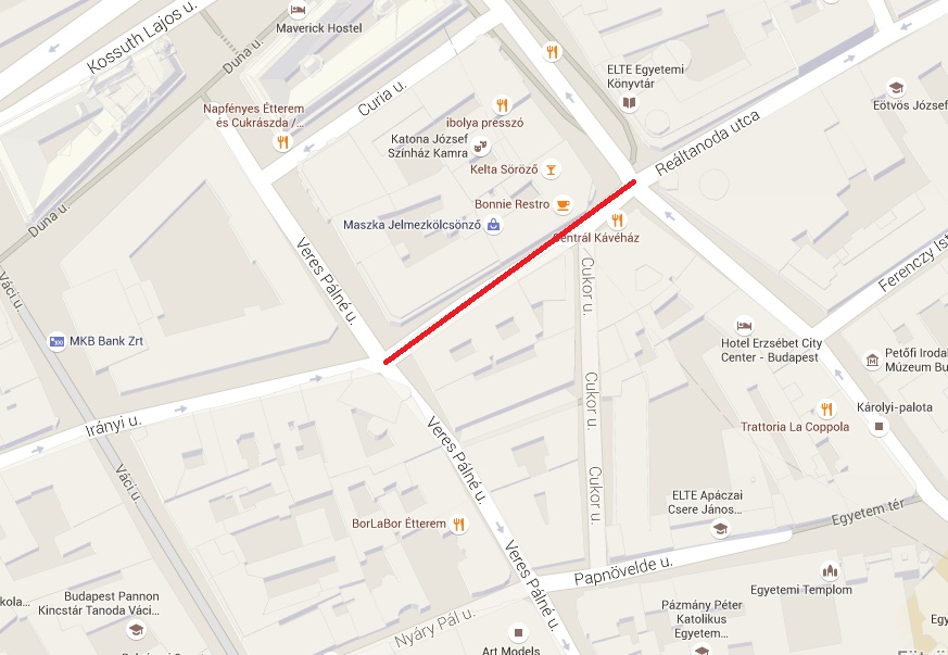 Irányi utca a Veres Pálné utca és a Károlyi utca között.