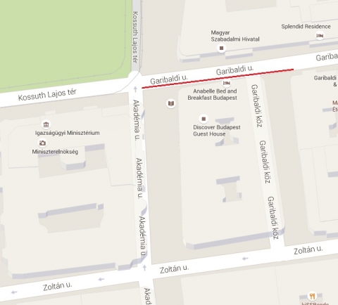 Garibaldi utca páratlan oldalán az Akadémia utcától 50 méter hosszon.