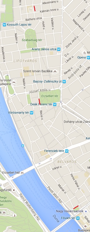 Az Erzsébet tér 4. szám előtt 20 méter hosszan.