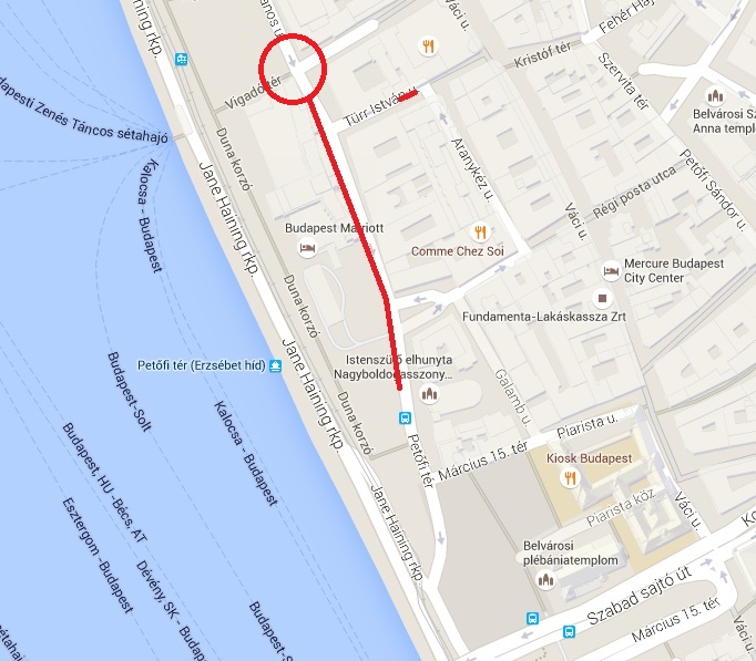 Apáczai Csere János utca és Vigadó tér kereszteződése.