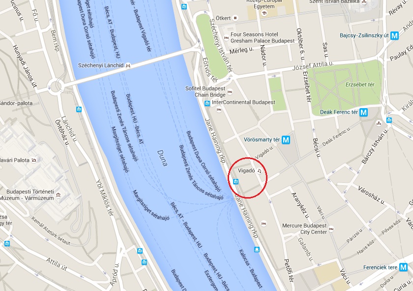 Vigadó tér mindkét oldalán lévő parkolóban.