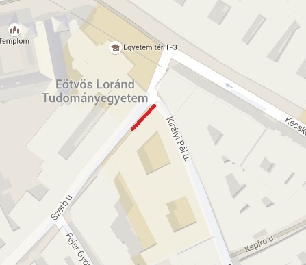 Szerb utca páratlan oldalán a Királyi Pál utcától 50 méter hosszan.