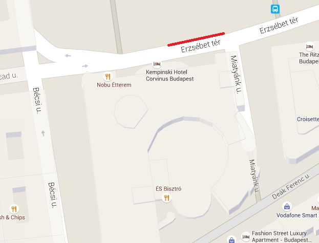 Erzsébet tér park felőli oldalán a Miatyánk utcától 20 méter hosszan.