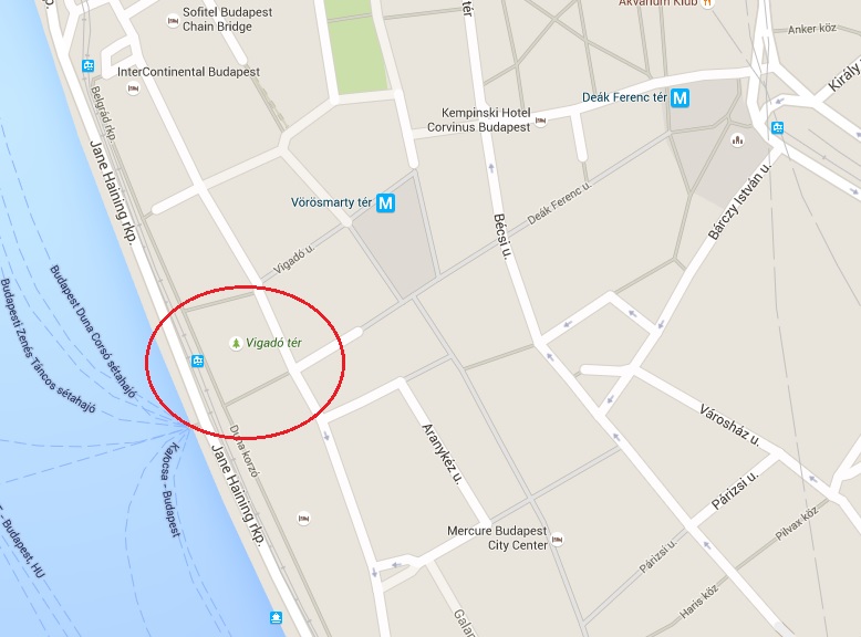 Vigadó tér mindkét oldalán a Vigadó tér és a Deák Ferenc utca között.