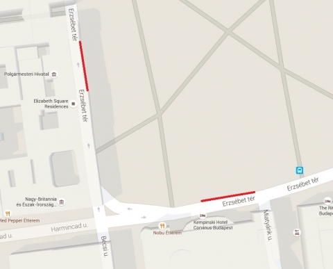 Erzsébet tér park felőli oldalán a Miatyánk utca és a Bécsi utca között 25 méter hosszan,