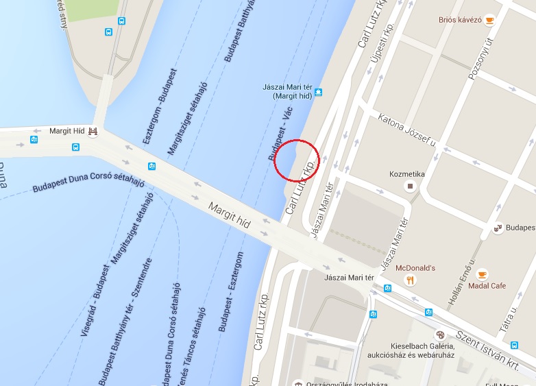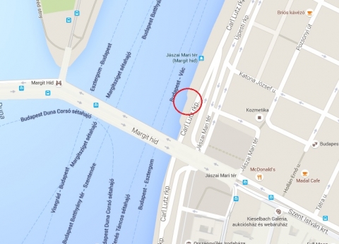 Jászai Mari tér 9-es hajóállomás előtt 50 méter hosszon.