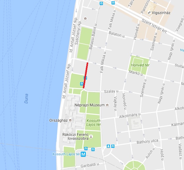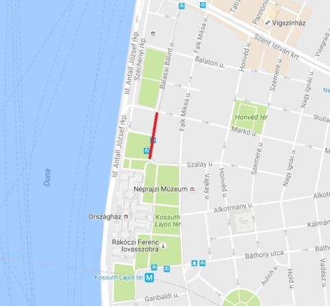 Balassi Bálint utca mindkét oldalán a Markó utca és a Kossuth tér között.