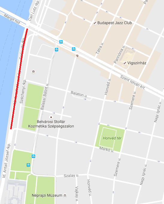 Pesti alsó rakparton a Markó utca és a Margit híd között.