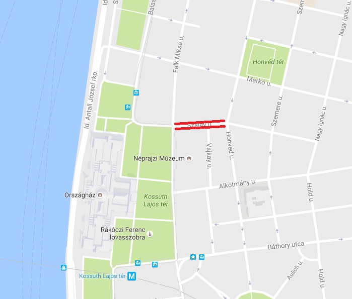Szalay utca mindkét oldalán a Honvéd utca és a Kossuth tér között.