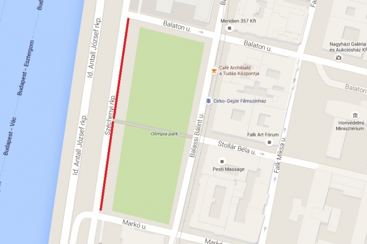 Széchenyi felső rakparton, az Olimpia Park melletti 15 darab parkolóhelyen.