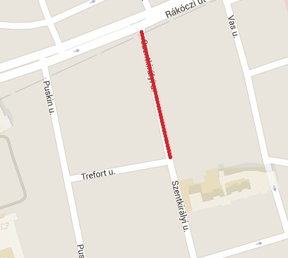 Szentkirályi utca mindkét oldalán a Rákóczi út és a Trefort utca között.