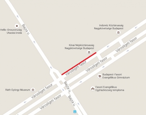Városligeti fasor páros oldali szervizútján a 16. és a 20. szám között.