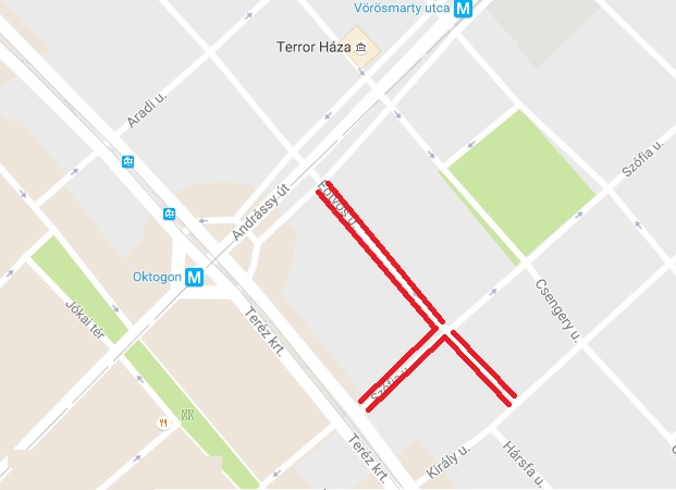 Szófia utca mindkét oldalán az Eötvös utca és a Teréz körút között.