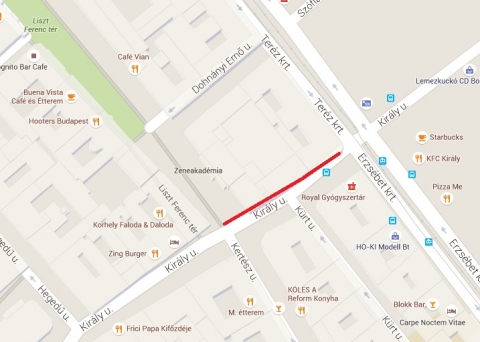 Király utca páros oldalán a Teréz körút és a Liszt Ferenc tér között.