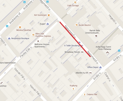 Nagymező utca 4-12. szám előtt.