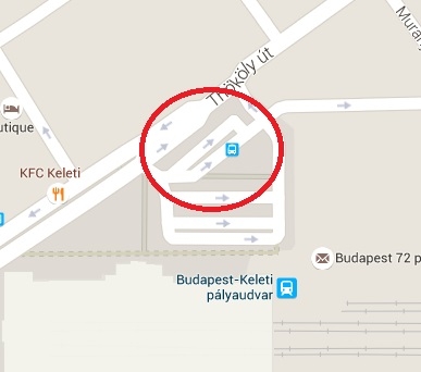 Keleti pályaudvar oldalsó parkolójában a Thököly út felé eső oldalon a Thököly út és a 8-as járatszámú autóbusz megállója közötti területen.