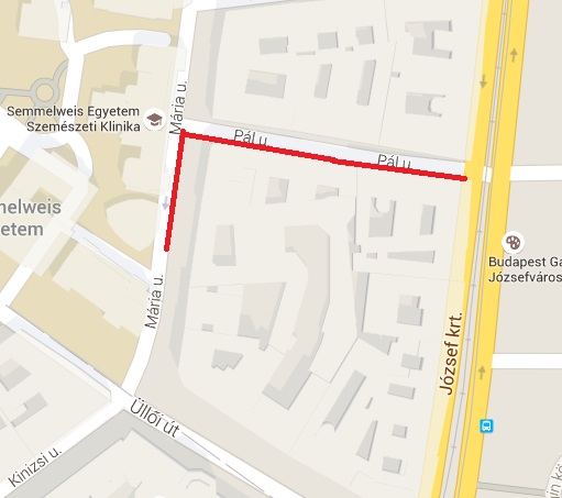 Mária utca páros oldalán az 54. és 58. szám között,