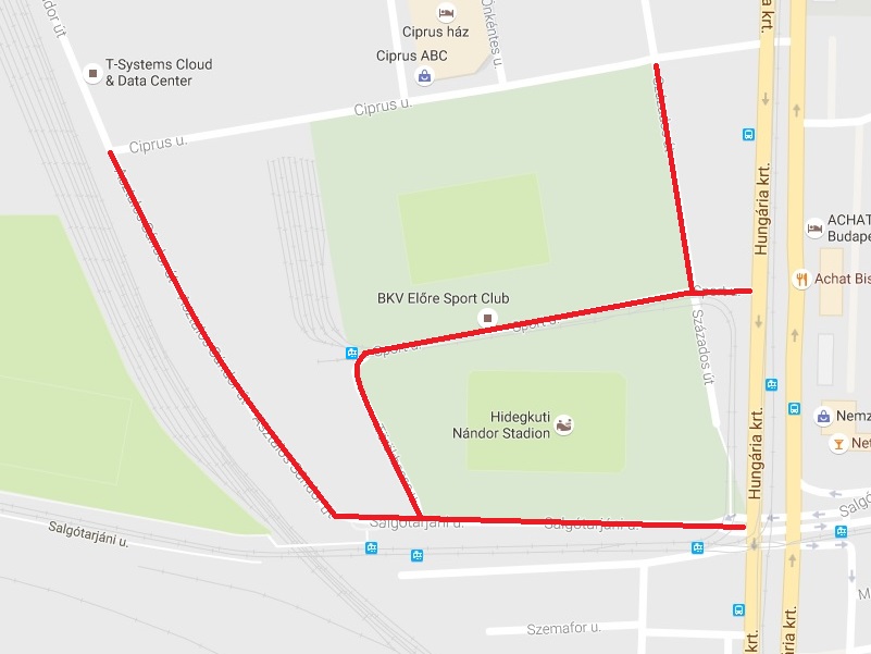 Törökbecse utca mindkét oldalán a Salgótarjáni utca és a Sport utca között,