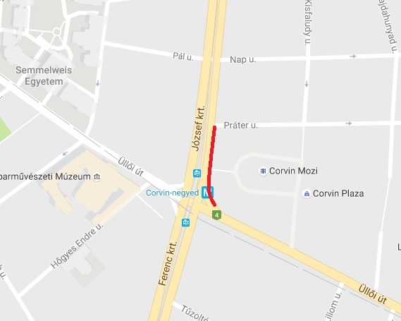 József körút páros oldalán az Üllői út és a Práter utca között.