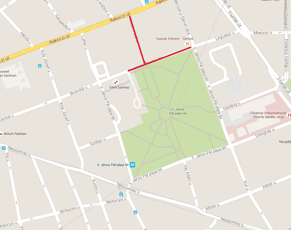 II. János Pál pápa tér 22. és 27. szám közötti szakasza.