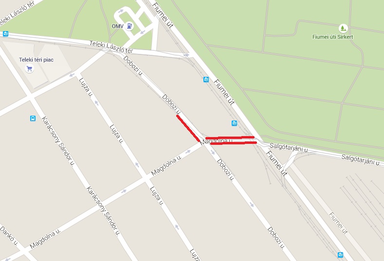 Magdolna utca mindkét oldalán a Fiumei út és a Dobozi utca között,
