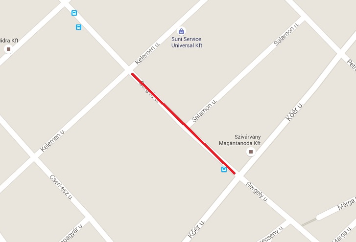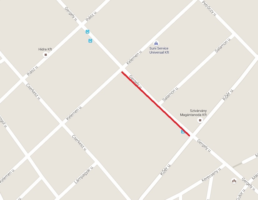 Gergely utca a Kelemen utca és a Kőér utca között.