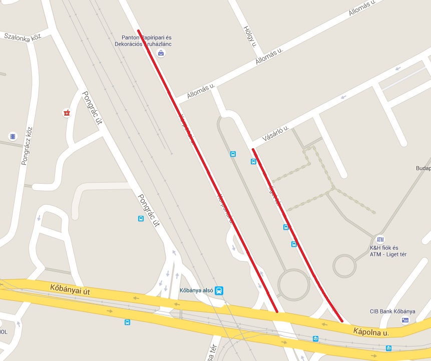 Korponai út az Állomás utca és a Kápolna utca között.