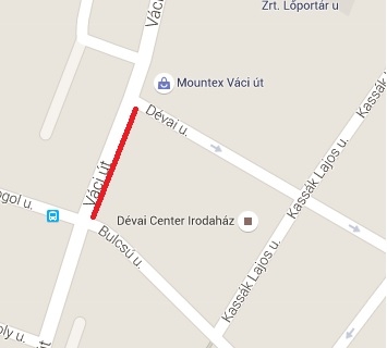 Váci út városból kifelé vezető oldalán a Bulcsú utca és Dévai utca közötti útszakasz mindhárom forgalmi sávja.