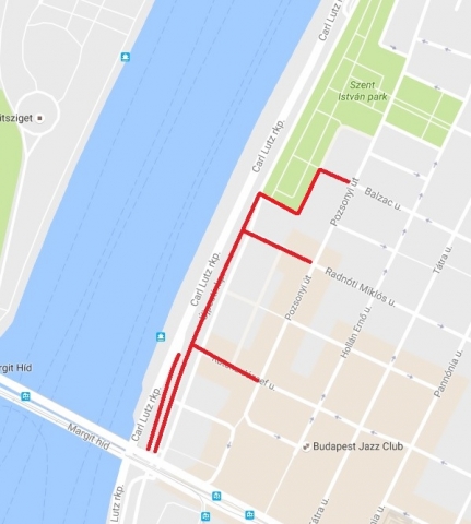 Újpesti rakpart mindkét oldalán a Jászai Mari tér és a Szent István park között,