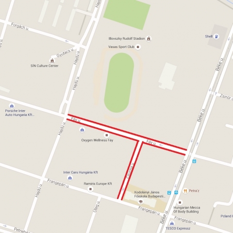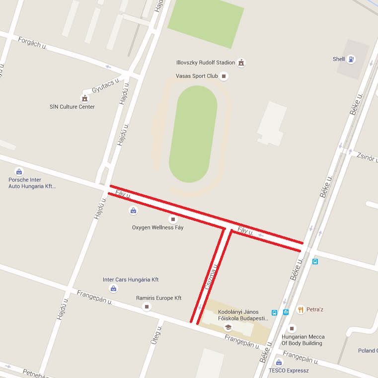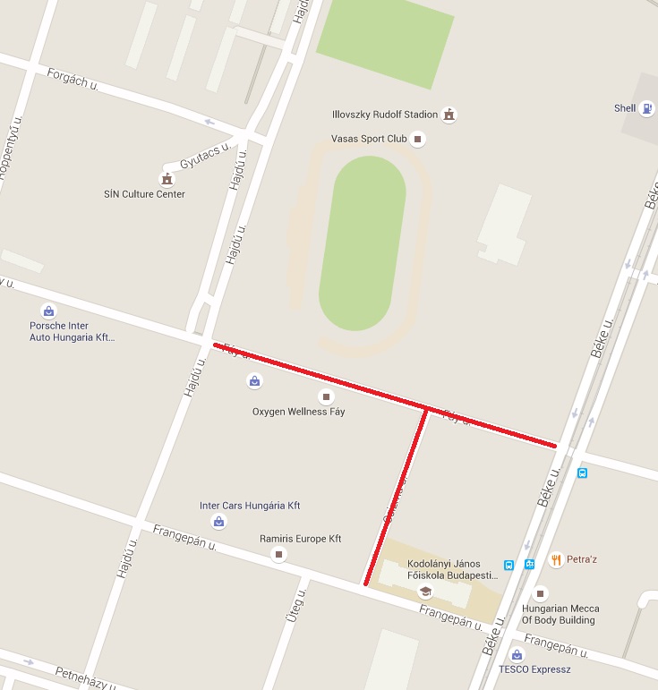Fáy utcában a Béke utca és a Hajdú utca közötti szakaszon mindkét irányban,