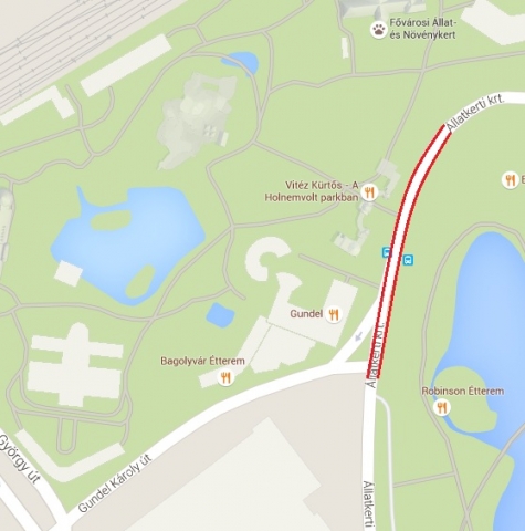Állatkerti körúton a Gundel Károly körúttól a Fővárosi Nagycirkusz felé 150 méter hosszan mindkét oldalon.