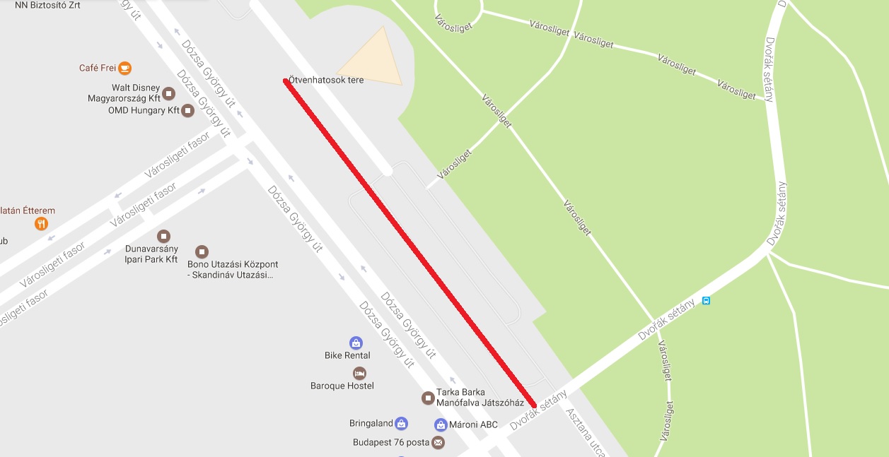 Felvonulási téren a Dvorák sétány és az 56-os emlékmű közötti szakaszon.