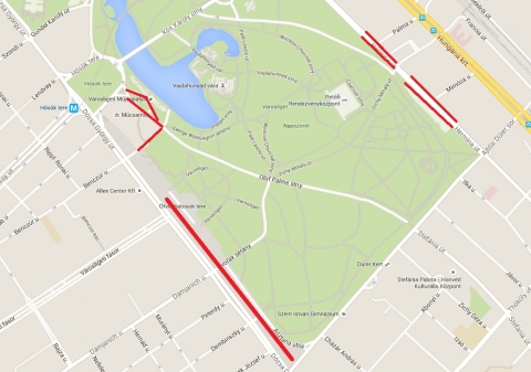 Városligeti körút mindkét oldalán a Közlekedési Múzeum előtti parkoló területén,