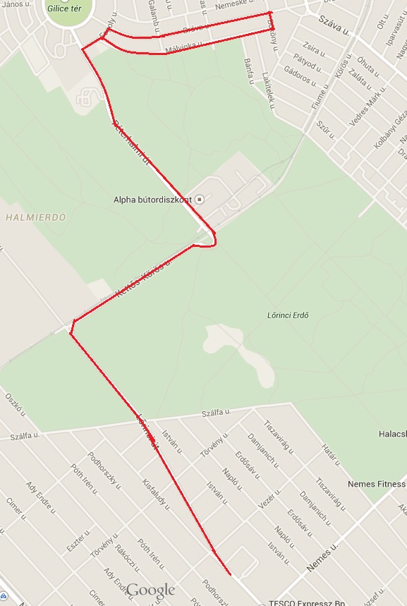 Pestszentimrei Sportkastély – Kisfaludy utca - Lőrinci utca – Kettős-körös utca – Péterhalmi utca – Fogoly utca – Mályinka utca – Bököny utca – Dráva utca – Fogoly utca – Péterhalmi utca – Kettős-körös utca – Lőrinci utca – Kisfaludy utca – Pestszentimrei Sportkastély útvonalat.
