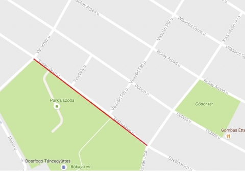 Szélmalom utcát a Városház utca és a Kiss István utca között,