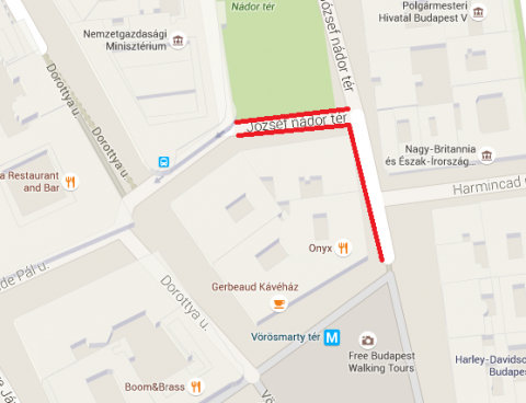 József nádor tér 5-6. szám előtt mindkét oldalon,