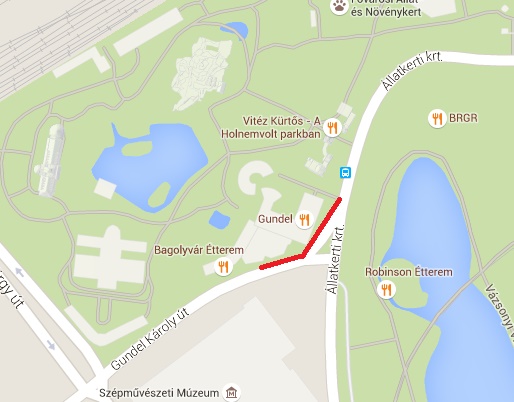 Gundel Károly úton a Gundel étterem mellett 30m hosszan.