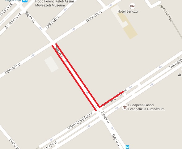 Bajza utca mindkét oldalán a Városligeti fasor és a Benczúr utca között.