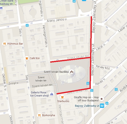 Bajcsy-Zsilinszky út páros oldalán a Bazilika és az Arany János utca között.