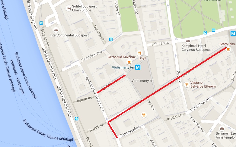 Vigadó utca mindkét oldalán.