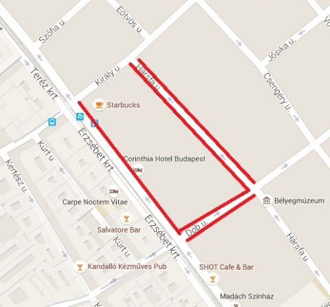 Erzsébet körúton a Corinthia Hotel előtt a Dob utca és a Király utca között,
