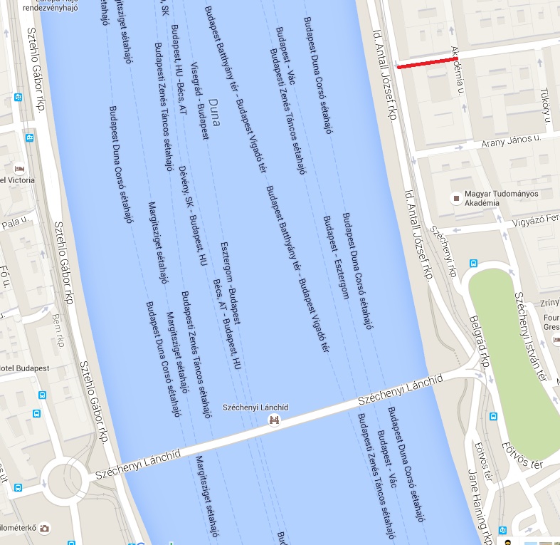 Széchenyi utca a Széchenyi felső rakpart és az Akadémia utca között.