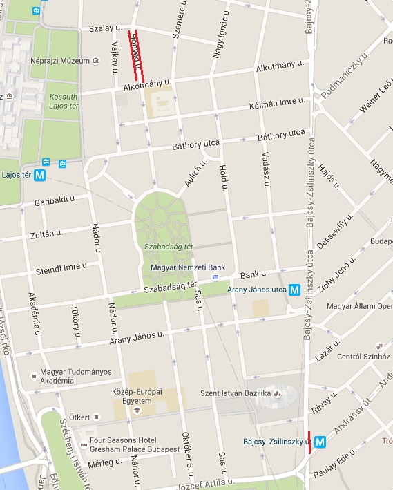 Bajcsy-Zsilinszky út páratlan oldalán az Andrássy úttól 20 méter hosszan.