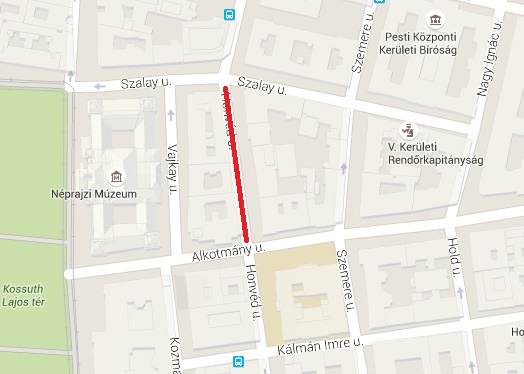 Honvéd utca a Szalay utca és az Alkotmány utca között.