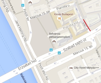 Váci utcában a Szabad sajtó út és a Piarista köz közötti taxidroszton.