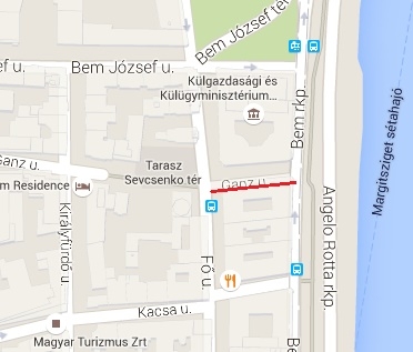 Ganz utca páros oldalán a Fő utca és a Bem rakpart között.