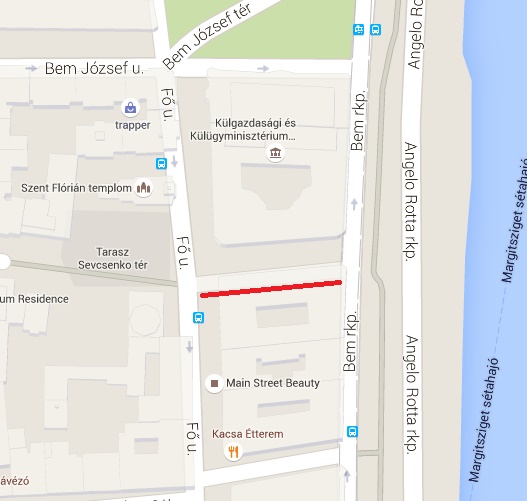 Ganz utca páros oldalán a Fő utca és a Bem felső rakpart között.