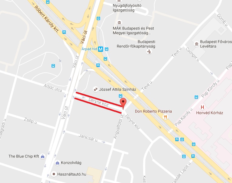 Déryné köz, az Angyalföldi út és a Váci út között.