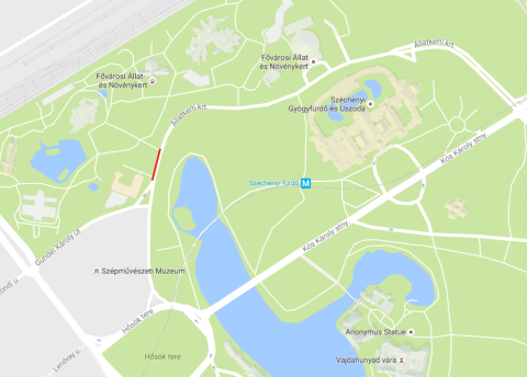 Állatkerti körút Állatkert felőli oldalán a főbejárattól a hátsó bejáratig (Elefántház).