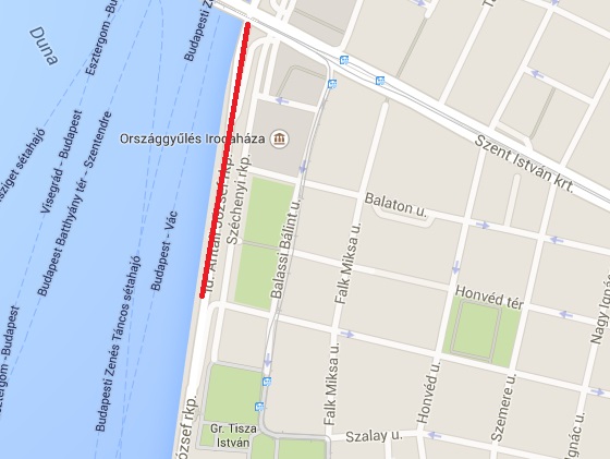 Pesti alsó rakparton a Markó utca és a Margit híd között.